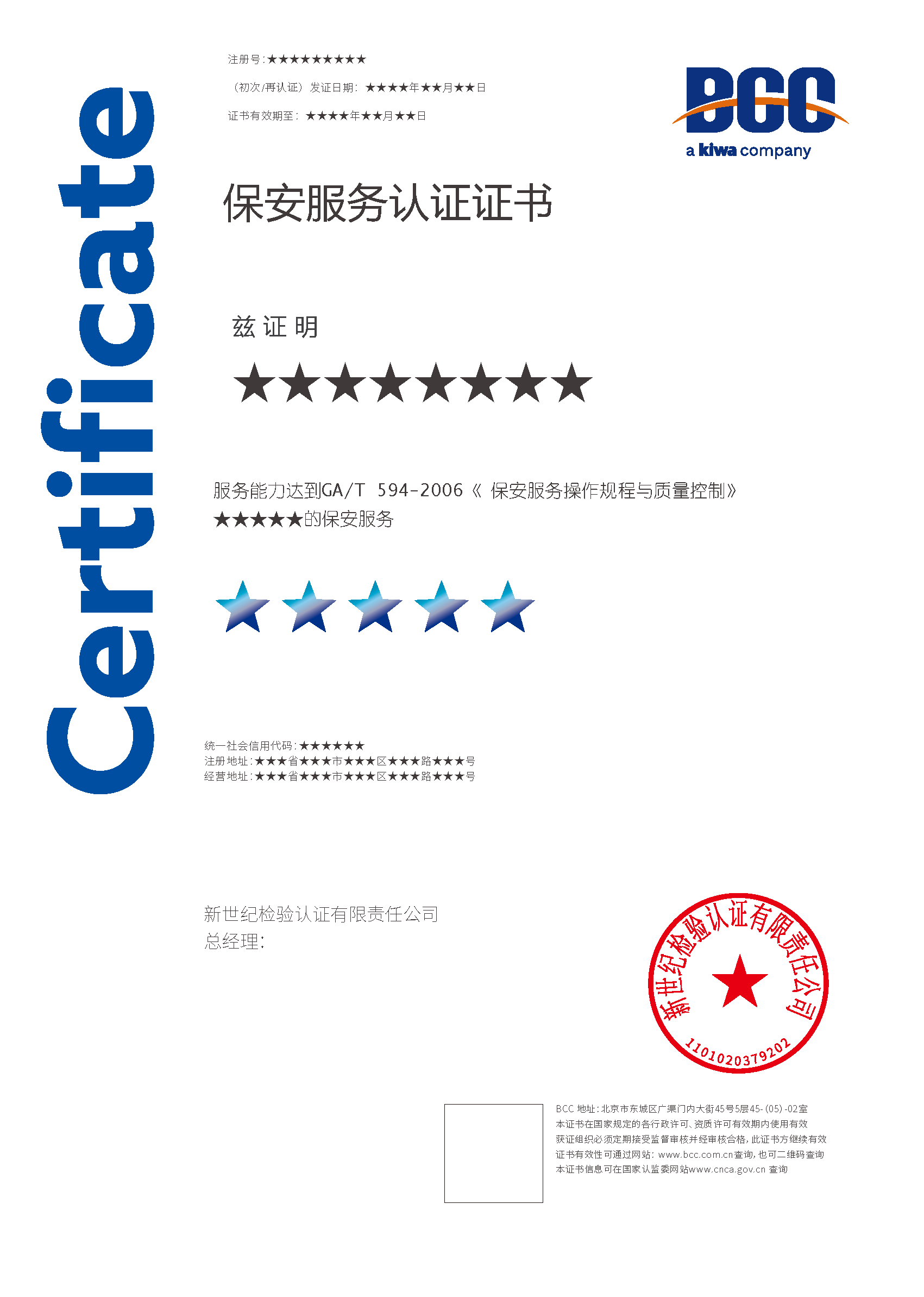保安服務(wù)認(rèn)證證書的有效期為三年,BCC每年會(huì)對(duì)獲證組織進(jìn)行必要的監(jiān)督審查,證書到期前會(huì)進(jìn)行再認(rèn)證審查。