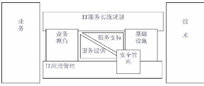 IT 服務(wù)實(shí)施規(guī)劃處于整個(gè)結(jié)構(gòu)的最高層,功能是對(duì)框架內(nèi) 6 大模塊開展各項(xiàng)工作進(jìn)行指導(dǎo),幫助用戶分析現(xiàn)有情況,協(xié)助設(shè)定發(fā)展戰(zhàn)略與目標(biāo),同時(shí)在實(shí)踐中對(duì)完成的工作進(jìn)行評(píng)測(cè),給出調(diào)整意見。